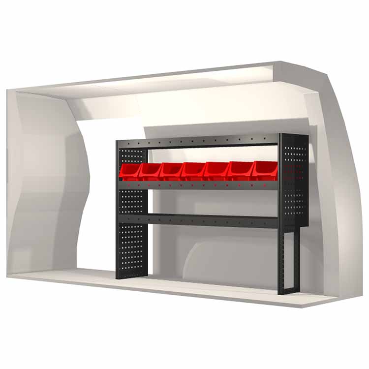 Ce système d’aménagement a été spécialement conçu pour assurer une adaptation optimale ainsi que la meilleure fonctionnalité et sécurité possible. Il a été développé pour un usage professionnel, est flexible et est destiné à des métiers de services dans des domaines variés. Toutes les étagères sont équipées de tapis caoutchouc, et tous les tiroirs de tapis mousse. Les composants d’assemblage et de fixation sont inclus.