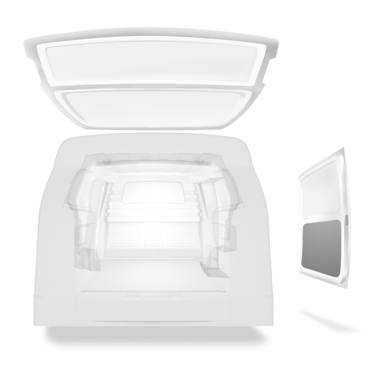 Pour permettre une protection complète, les revêtements pour les parois intérieures du véhicule, les portes arrière et le toit sont disponibles séparément.