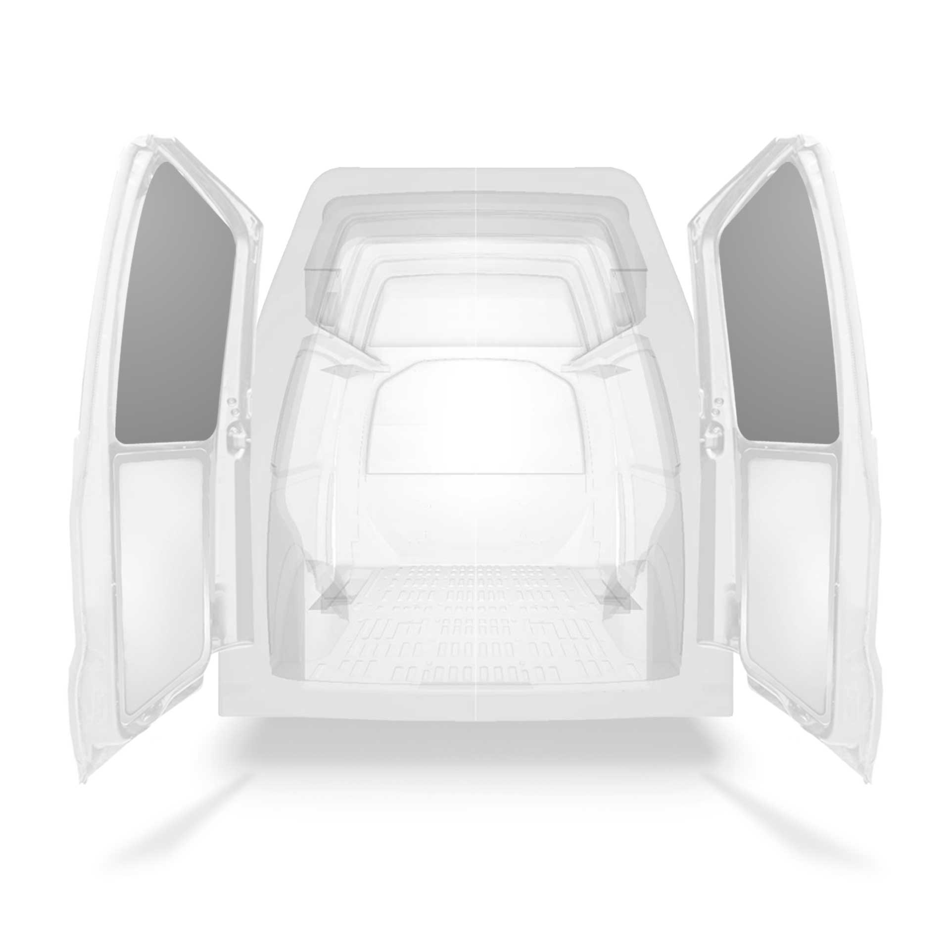 Ces revêtements de portes arrières pré-coupés sont fabriqués pour correspondre aux sections supérieures des portes doubles de l’utilitaire.